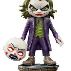 Bereit, Spaß daran zu haben, Chaos zu fördern, nimmt Joker (Joker) seine Theatermaske in die Hand, um sich zwischen seinen Kumpanen und seiner typischen Spielkarte zu verstecken. Verewigt durch die preisgekrönte Leistung des verstorbenen Schauspielers Heath Ledger in dem von der Kritik gefeierten Film „Batman: The Dark Knight“ (2008), unter der Regie von Christopher Nolan, präsentiert Iron Studios seine Statue „The Joker – The Dark Knight“ in seinem stilisierten Toy Kunstversion der Minico-Linie.