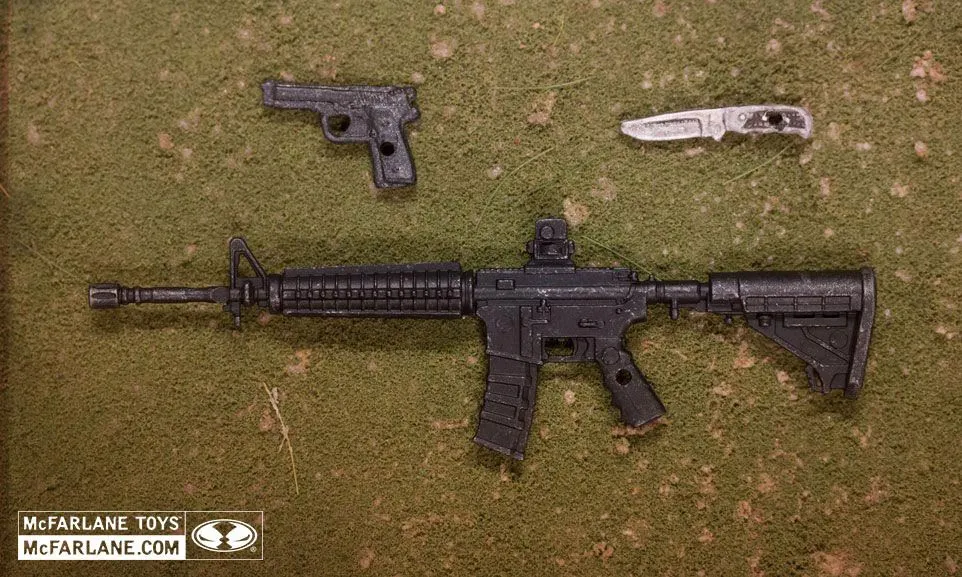 Die bewegliche Figur von Beth kommt mit M4A1 Sturmgewehr, Pistole und Messer.