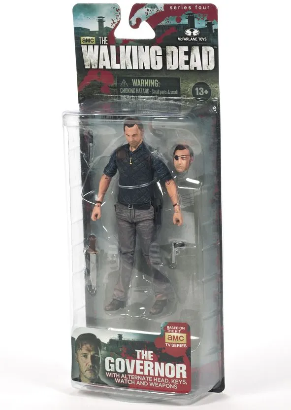 McFarlane Actionfigur Serie 4 des Governors aus der erfolgreichen Horror-TV-Serie The Walking Dead. Die bewegliche Figur vom Governor kommt mit Austauschkopf und mehreren Waffen.