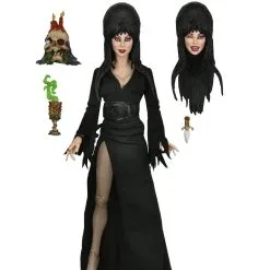 Die berühmte Elvira, Mistress fo the Darkness, als 20cm große clothed Actionfigur von NECA. Wir feiern 40 Jahre Elvira, Herrin der Dunkelheit! Die teuflisch entzückende Cassandra Peterson spielt die Rolle der Elvira seit 40 Jahren mit Anmut, Humor und mehr als nur einem kleinen Übermut. NECA ist stolz darauf, diese teuflisch fantastische Figur für Ihre Horror-Sammlung zu präsentieren. Die 20,3 cm große Elvira-Actionfigur ist voll beweglich und verfügt über maßgeschneiderte Stoffkleidung sowie jede Menge Zubehör … abwechselnd blinzelnder Kopf, Schädel, Kelch, Figurenständer und ihr charakteristischer Dolch, der in eine Schlaufe am Gürtel passt.