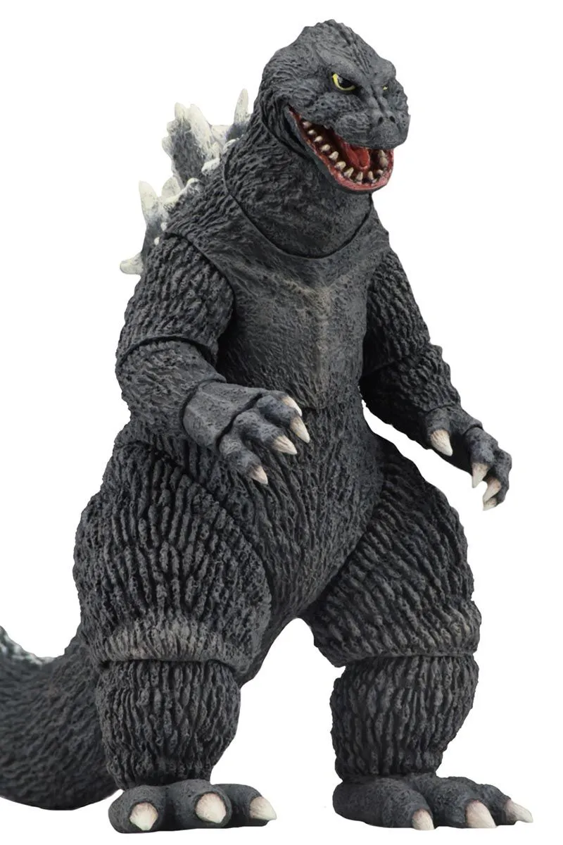 NECAs Actionfigur von Godzilla aus dem zweiten Schwarz/Weiß Kinofilm von Ishirō Honda: Die Rückkehr des King Kong (1962, OT: Kingu Kongu tai Gojira).