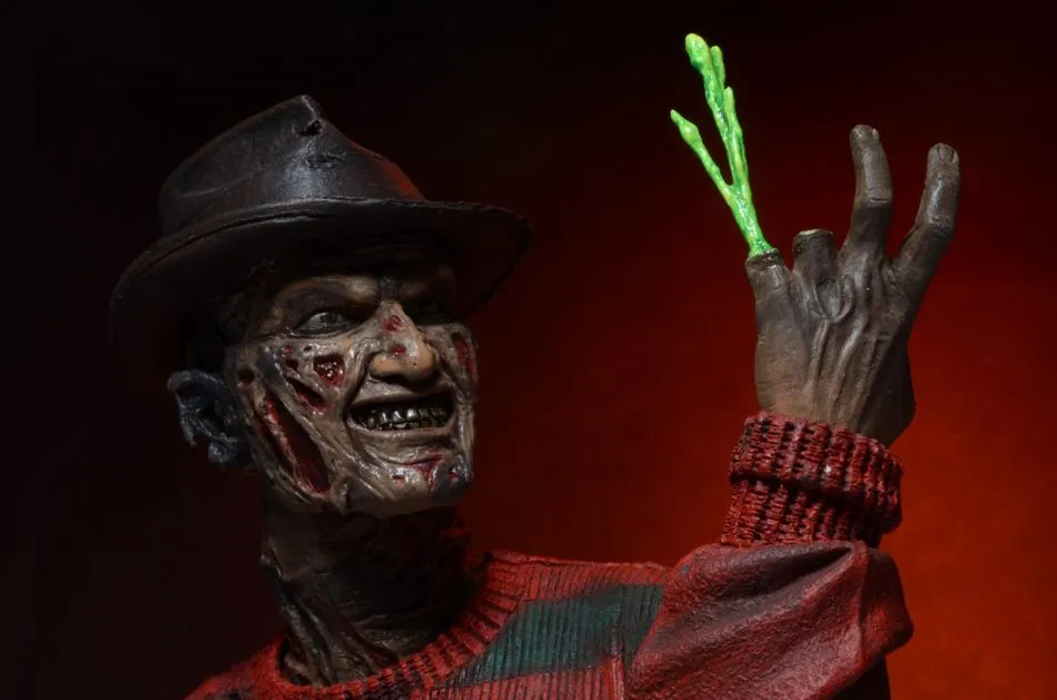 Die NECA Ultimate Deluxe Figur von Freddy Krueger zum 30jährigen Jubiläum von Nightmare on Elm Street kommt mit einer Menge Zubehör: