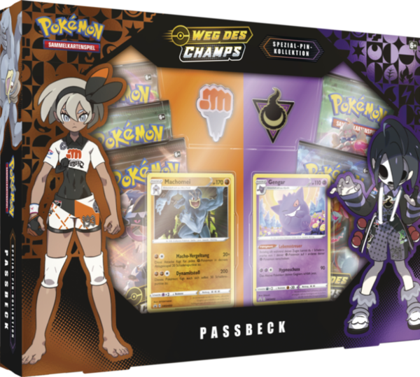 In jeder dieser Pin-Kollektionen findest du zwei Sammler-Pins mit beiden Arena-Logos, holografische Karten mit dem Partner-Pokémon beider Arenaleiter und fünf Boosterpacks der besonderen Erweiterung Weg des Champs. Setze deine Reise fort und besiege deine Rivalen!